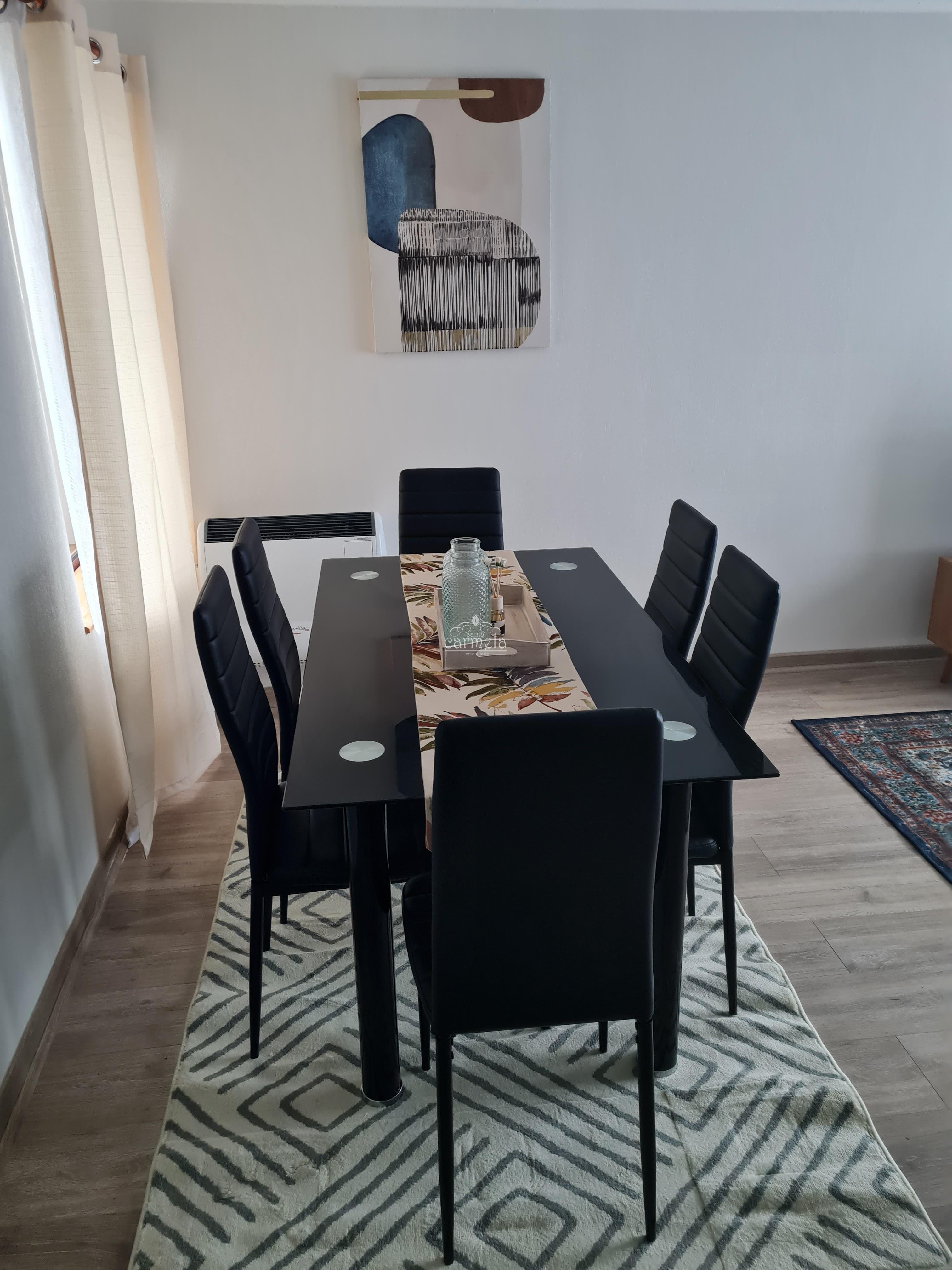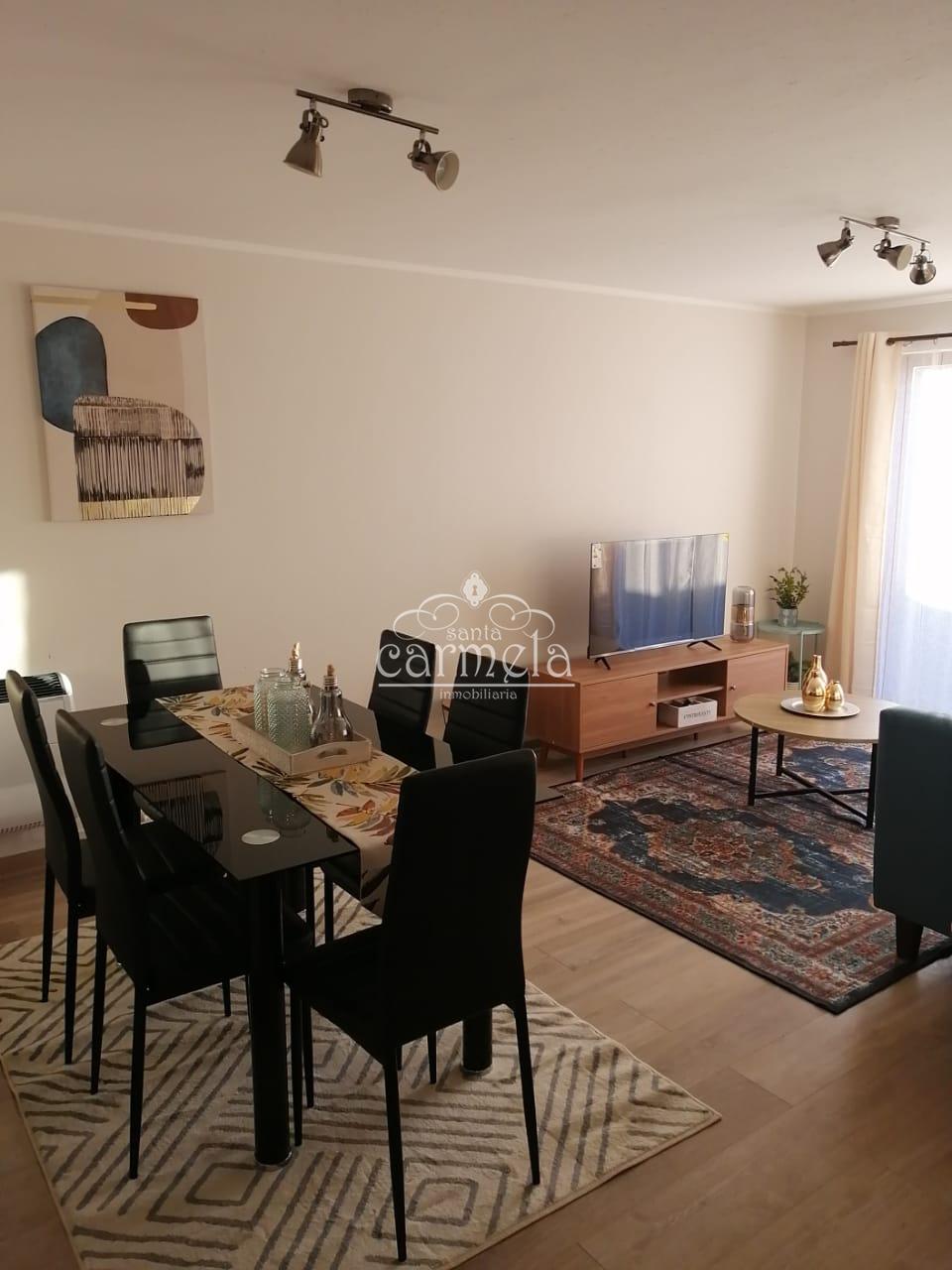 En el primer nivel se encuentra un acogedor living completamente equipado con sofá, televisión de 42 pulgadas y rack, además de un comedor para seis personas, ideal para compartir en familia. La cocina está completamente equipada, incluyendo horno, encimera, hervidor, microondas, tostador eléctrico, refrigerador, lavadora–secadora y comedor de diario, ofreciendo un espacio práctico y funcional.